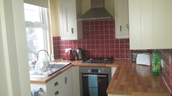 This is a three bedroom house in lovely condition. All the bedrooms are large and are complete with double bed, wardrobe, and chest of drawers. The bedrooms don't have desks as there is a separate study with three desks, shelves and notice boards.